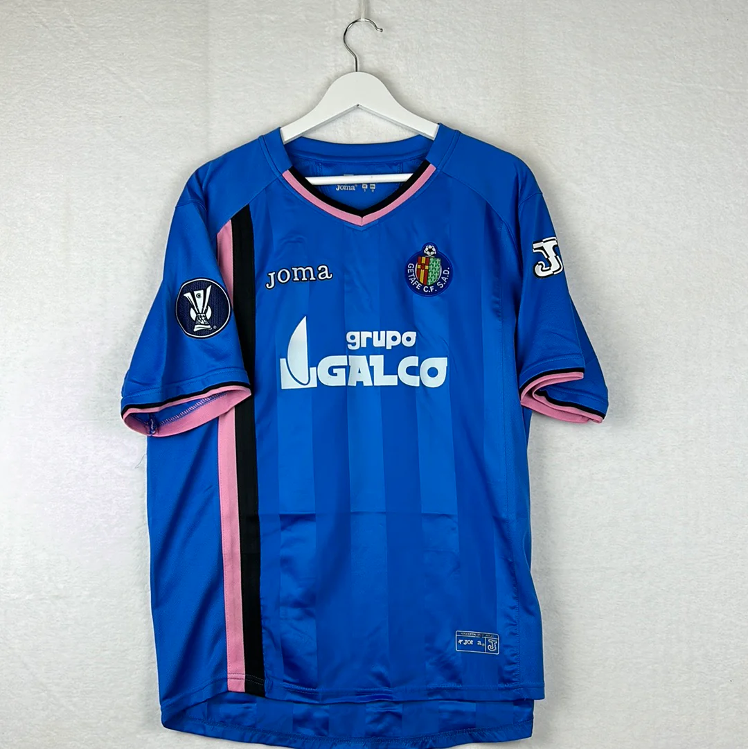 Esta es la cuarta equipación del Getafe C.F. de la temporada 2007/2008, un año histórico para el club por su primera participación europea. La camiseta, fabricada por Joma y con el patrocinador Grupo Galco, tiene una historia particular: Uso exclusivo en Europa: Esta equipación azul con detalles en rosa y negro fue utilizada exclusivamente durante la Copa de la UEFA (actual Europa League), y no en los partidos de Liga. Gestas europeas: Es especialmente recordada por los aficionados por la histórica eliminatoria de cuartos de final contra el Bayern de Múnich. El Getafe logró un empate 1-1 en el partido de ida en el Allianz Arena y estuvo muy cerca de eliminar al gigante alemán en el partido de vuelta en el Coliseum Alfonso Pérez.